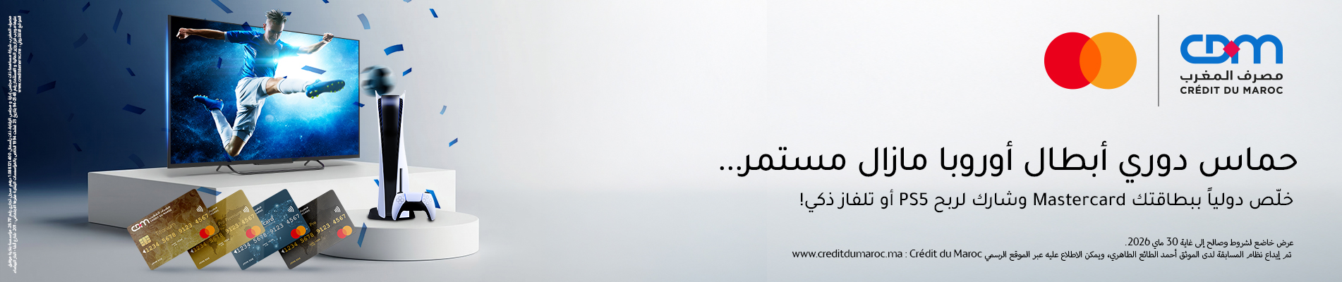 أدوا معاملاتكم الدولية بواسطة بطاقتكم ماستر كارد لمصرف المغرب. كل عملية أداء تمنحكم فرصة للدخول في السحب.